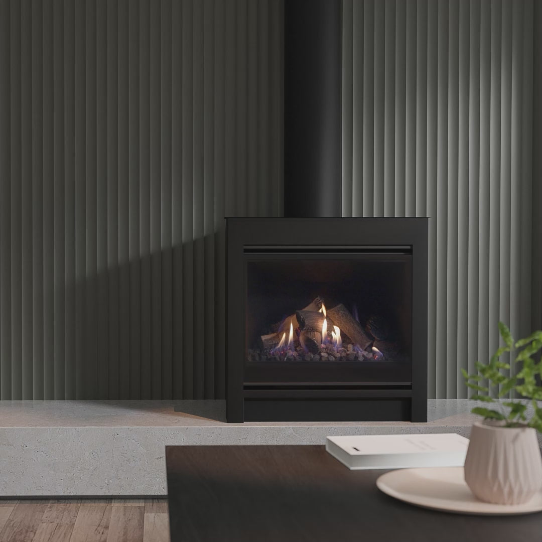 This sleek and black fire fits into tight spaces, and it has a large glass window for maximum flame viewing. The beauty of gas is that you get the same flame and same heat as your old wood burner, without the mess or fuss. The Powered Vent Flue System draws air from outside the home into a sealed unit, keeping your home free of moisture and fumes.