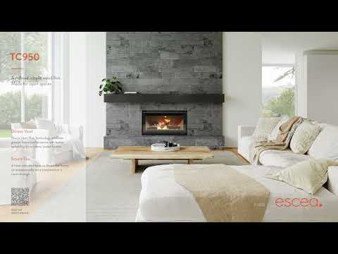 The Escea TC950 pushes the boundaries of wood fire design with a sleek minimalist finish that blurs the lines between the wall and the flames.